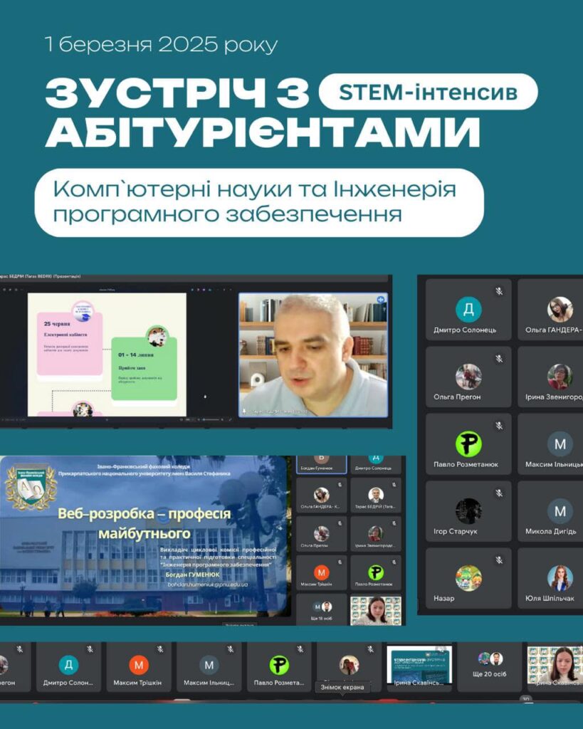 Під час заходу абітурієнти дізналися про умови вступу на такі спеціальності як Комп’ютерні науки та Інженерія програмного забезпечення та чому потрібно обрати навчання в нашому фаховому коледжі.