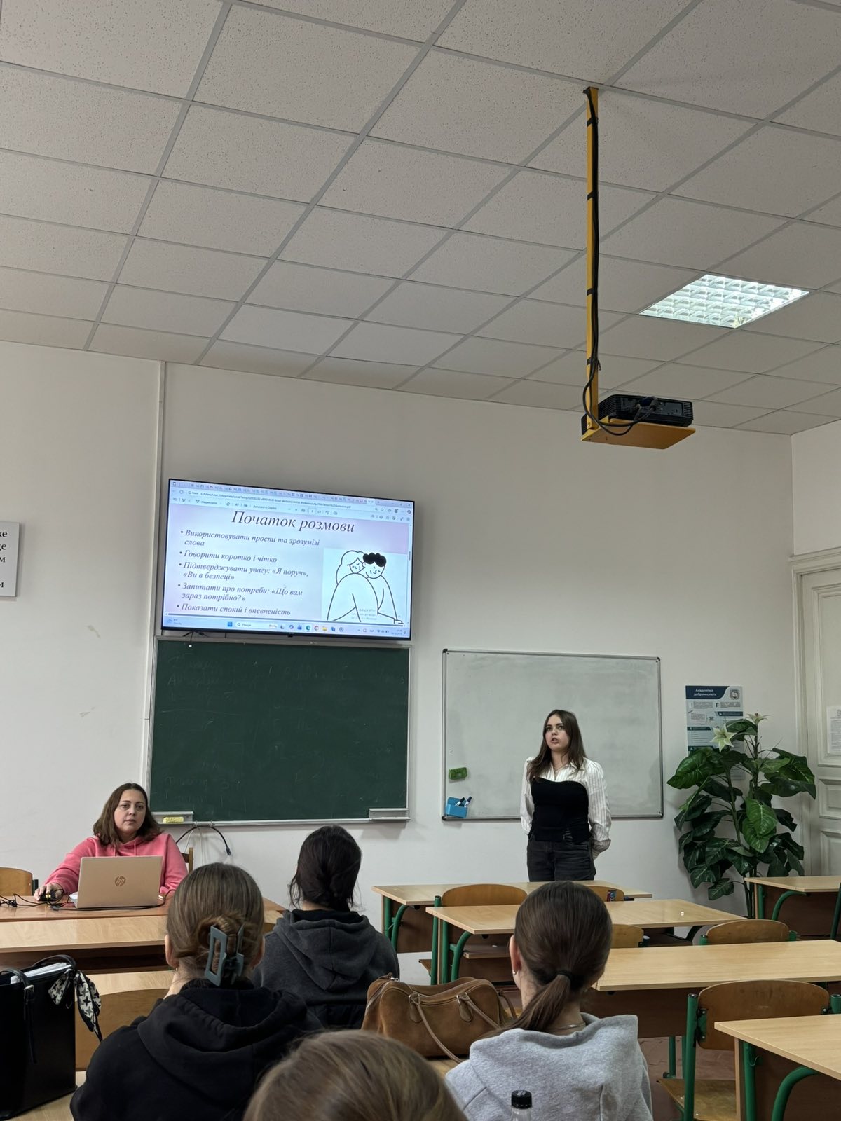 Для спеціальності «Правоохоронна діяльність» акцент був на практичних аспектах службового спілкування: застосуванні «я-повідомлень» у складних ситуаціях, поясненні прав і норм закону зрозумілою мовою, комунікації з дітьми, потерпілими та агресивними особами, управлінні інтонацією та паузами, роботі в умовах стресу, взаємодії з громадянами і медіа, а також ефективному інформуванні під час надзвичайних ситуацій та евакуації.