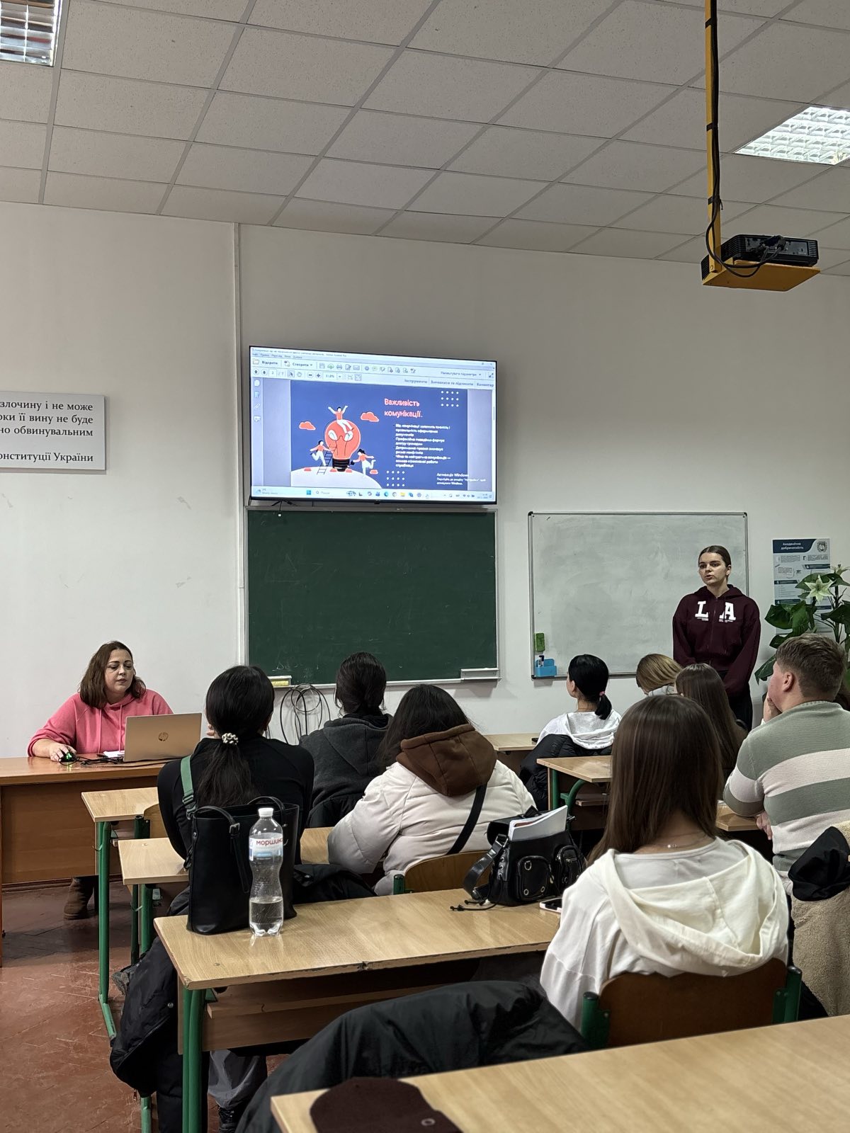 На юридичному відділенні відбулися підсумкові заняття з дисципліни «Ораторська майстерність та комунікаційні технології» для студентів спеціальностей «Правоохоронна діяльність» та «Секретарська та офісна справа», які провела керівник курсу Ірина Малиновська.