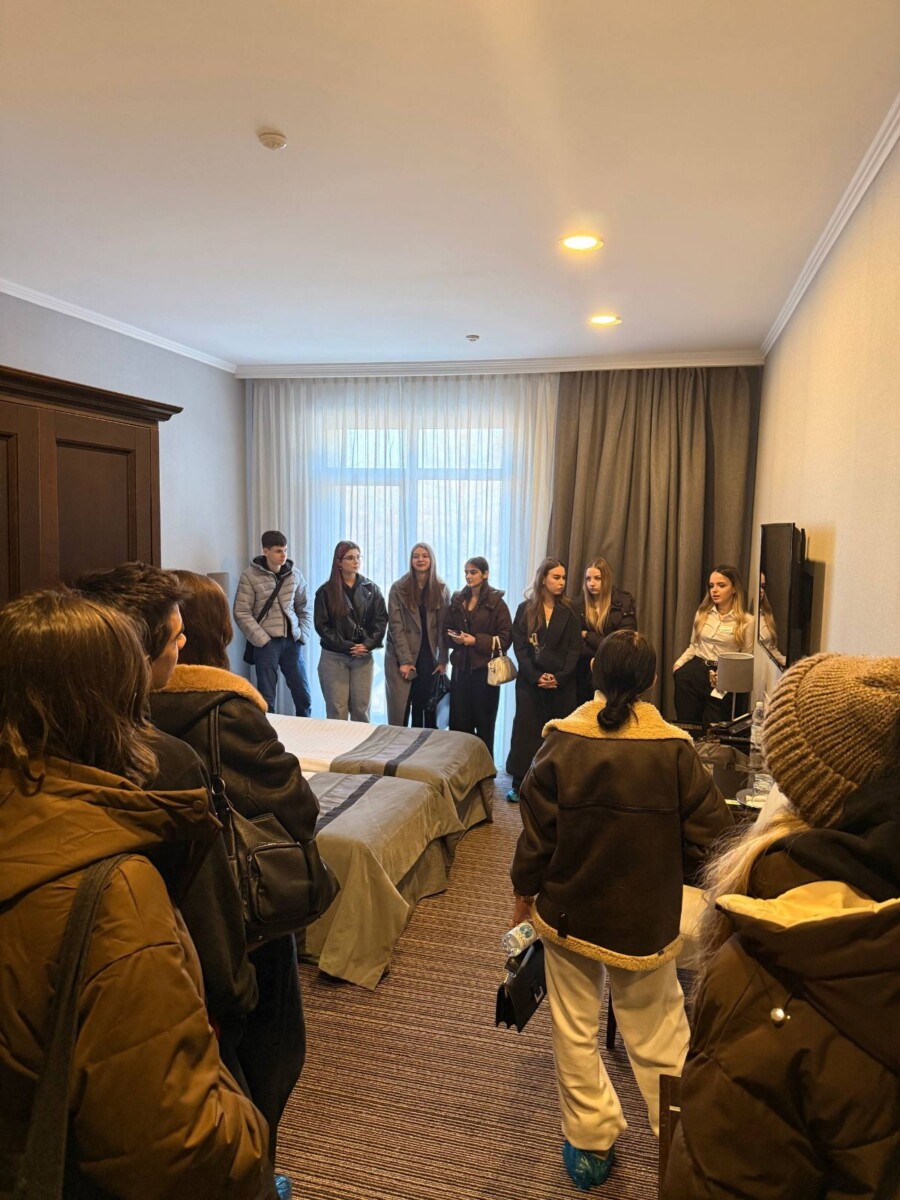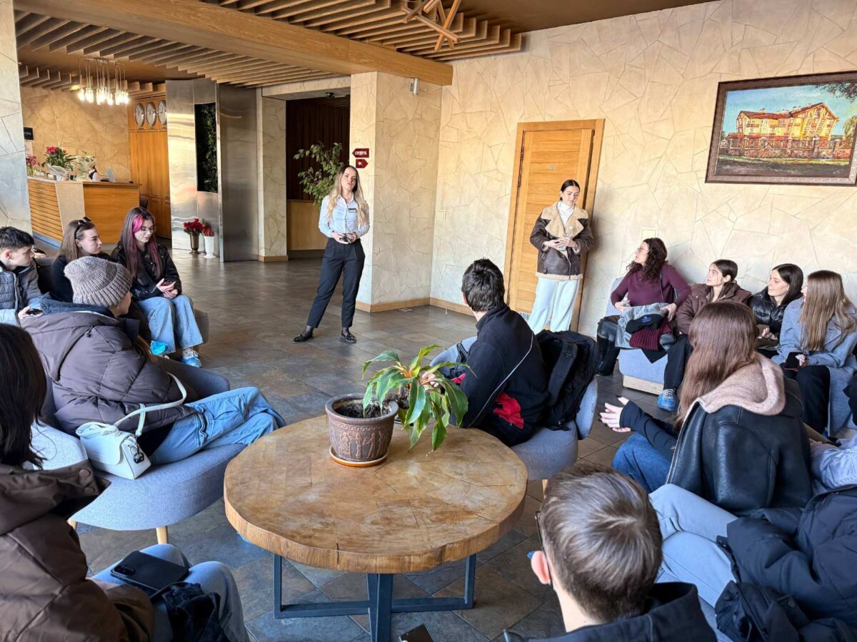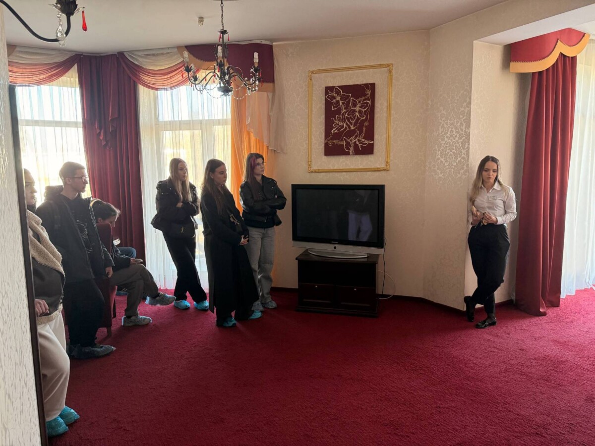Метою екскурсії стало поглиблення теоретичних знань та ознайомлення з практичними аспектами організації готельного сервісу. Менеджер готелю Катерина Курило провела змістовну зустріч, під час якої студенти отримали унікальну можливість «зазирнути за лаштунки» готельної індустрії та побачити, як функціонує сучасний засіб розміщення зсередини. Під час навчальної екскурсії майбутні фахівці сфери туризму детально ознайомилися зі структурою та особливостями номерного фонду готелю; стандартами оснащення номерів різних категорій; сучасним обладнанням і технічним забезпеченням закладу; організацією роботи служби прийому та розміщення; переліком основних і додаткових послуг, які формують конкурентоспроможність готелю на регіональному ринку. Окрему увагу під час зустрічі було приділено філософії гостинності та стандартам обслуговування гостей. Студенти дізналися про важливість індивідуального підходу до клієнта, врахування його вподобань, оперативного реагування на побажання та скарги. Менеджер поділилася практичними прикладами вирішення нестандартних ситуацій, що можуть виникати в роботі готелю, наголосивши на ролі комунікації, емоційного інтелекту та командної взаємодії персоналу. Жвавий інтерес викликала тема організації конференц-сервісу: особливості підготовки залів до ділових заходів, технічне забезпечення, координація роботи персоналу, супровід подій різного формату — від бізнес-зустрічей до масштабних конференцій. Студенти переконалися, що сучасний готель — це не лише місце проживання, а й важливий центр ділової активності міста.