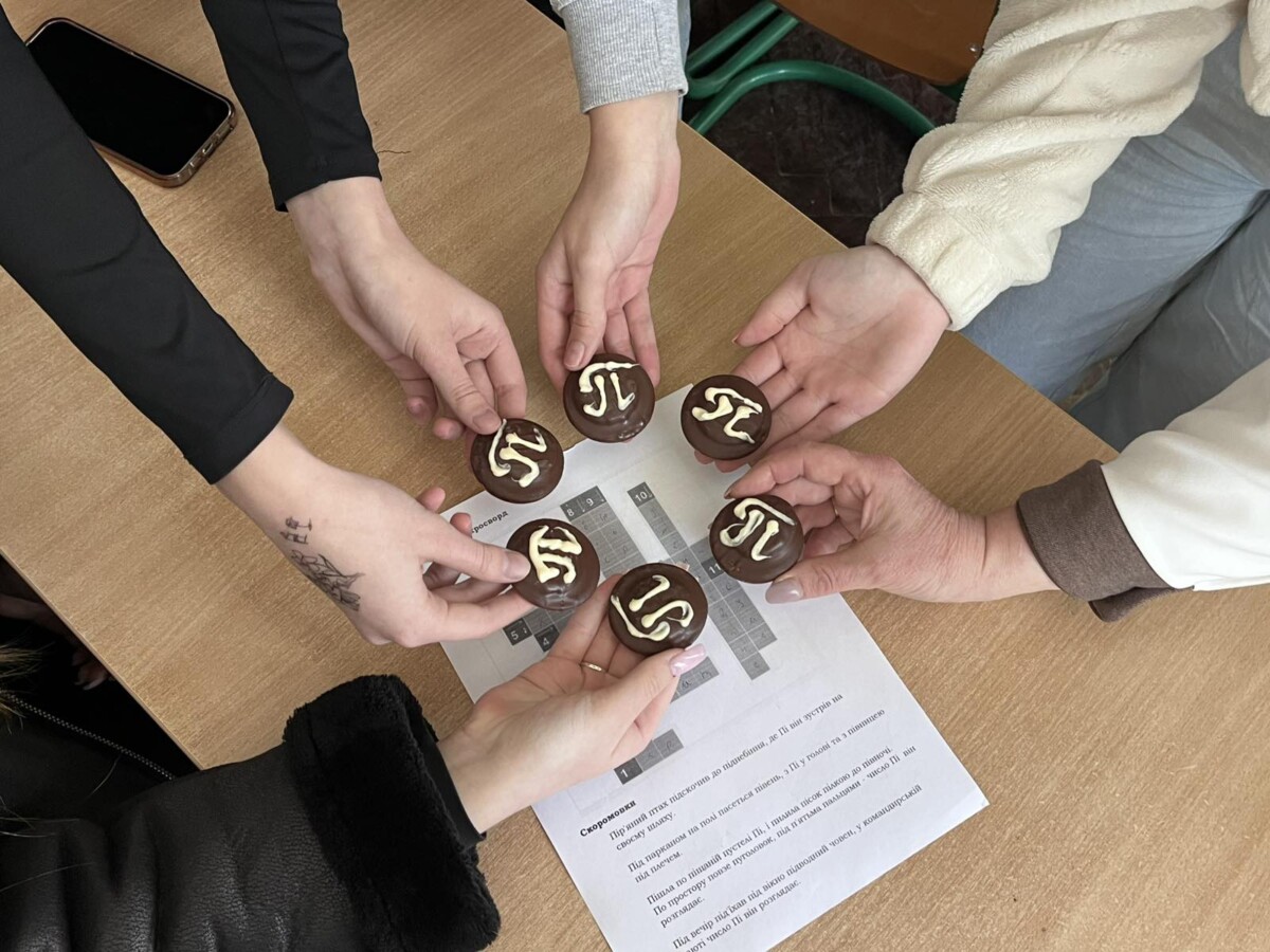 Завершилося дійство святковим частуванням— круглими тістечками, прикрашеними символом, та демонстрацією креативних малюнків, на яких студенти зобразили своє бачення цієї таємничої нескінченності. Вони були заінтриговані звучанням музики, яку написано для знаків числа Пі. Це було не лише пізнавально та весело, але і смачно!