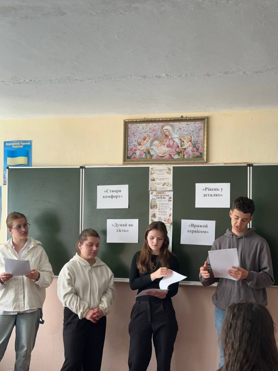 Під керівництвом викладачки Наталії МАКСИМ’ЮК студенти об’єдналися в команди та вирушили у професійну «подорож», проходячи 20 станцій маршрутного листа. Кожен етап вимагав знань, креативності, логіки та справжньої командної взаємодії Фіналом стала презентація та захист власних концепцій ідеального готелю — сучасних, продуманих і наповнених атмосферою справжньої гостинності.