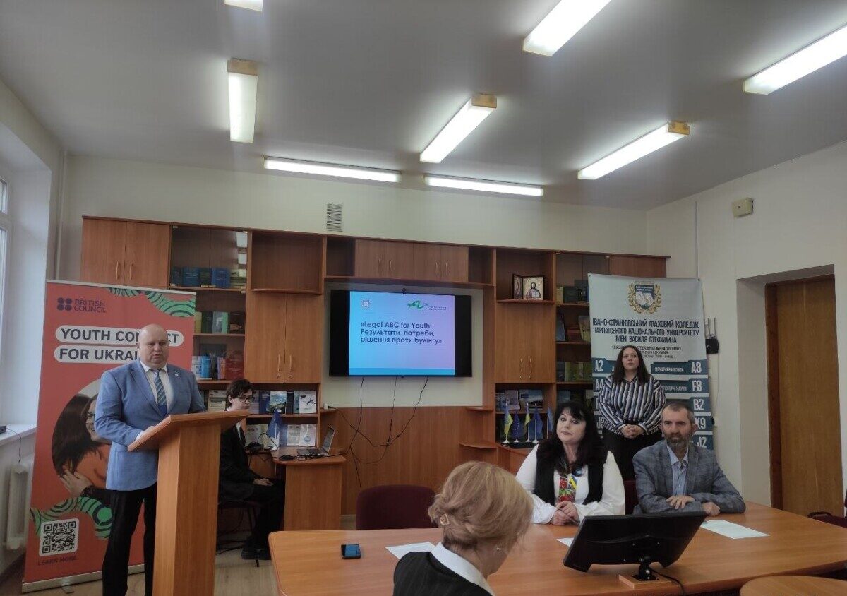 8 квітня 2026 року на базі юридичного відділення Івано-Франківського фахового коледжу відбувся круглий стіл «Legal ABC for Youth: результати, потреби, рішення проти булінгу», який став підсумковим заходом у межах реалізації проєкту «Youth Legal Literacy Project».
