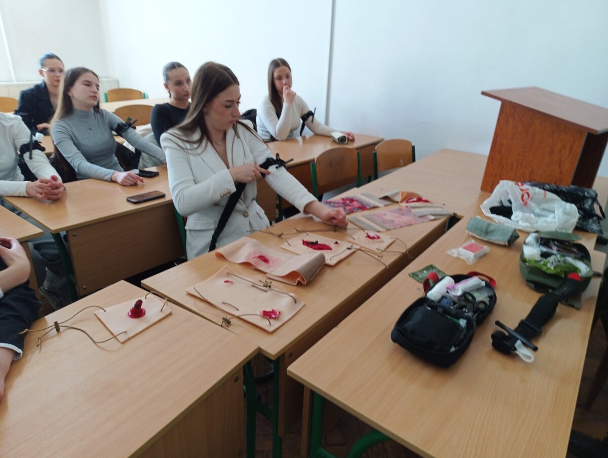 - Тактична медицина.Один із найважливіших блоків заняття — надання домедичної допомоги в умовах бойових дій. Студенти опанували алгоритми дій при пораненнях, зокрема зупинку кровотечі та евакуацію постраждалих.